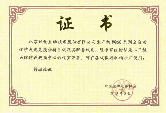 早在2018年,MQ60系列全自動化學發(fā)光免疫分析系統(tǒng)及其配套試劑通過中國醫(yī)學裝備協(xié)會組織國內(nèi)檢驗、心內(nèi)和急診等領(lǐng)域知名專家技術(shù)論證,一致認為該設(shè)備滿足急診對高質(zhì)量檢測結(jié)果的要求,性能穩(wěn)定可靠,操作簡單快速,符合質(zhì)控要求,不依賴其它設(shè)備或繁瑣前處理,可對各類樣品進行檢測,滿足二三級醫(yī)院建設(shè)胸痛中心的要求,適合各級醫(yī)療機構(gòu)推廣應(yīng)用。