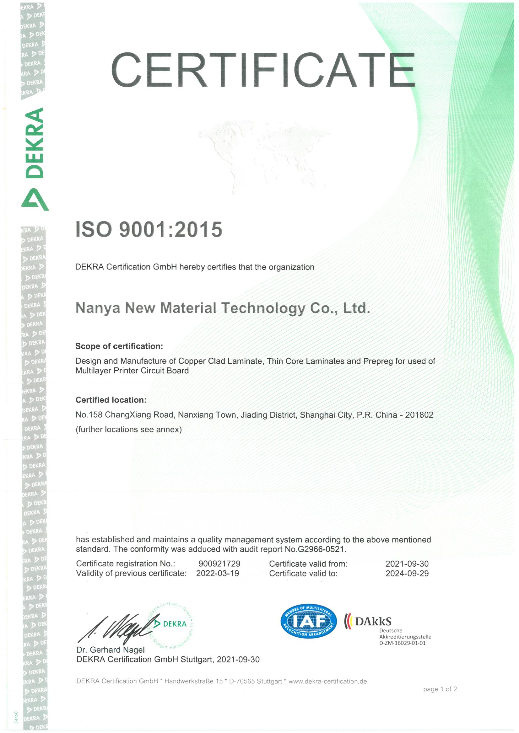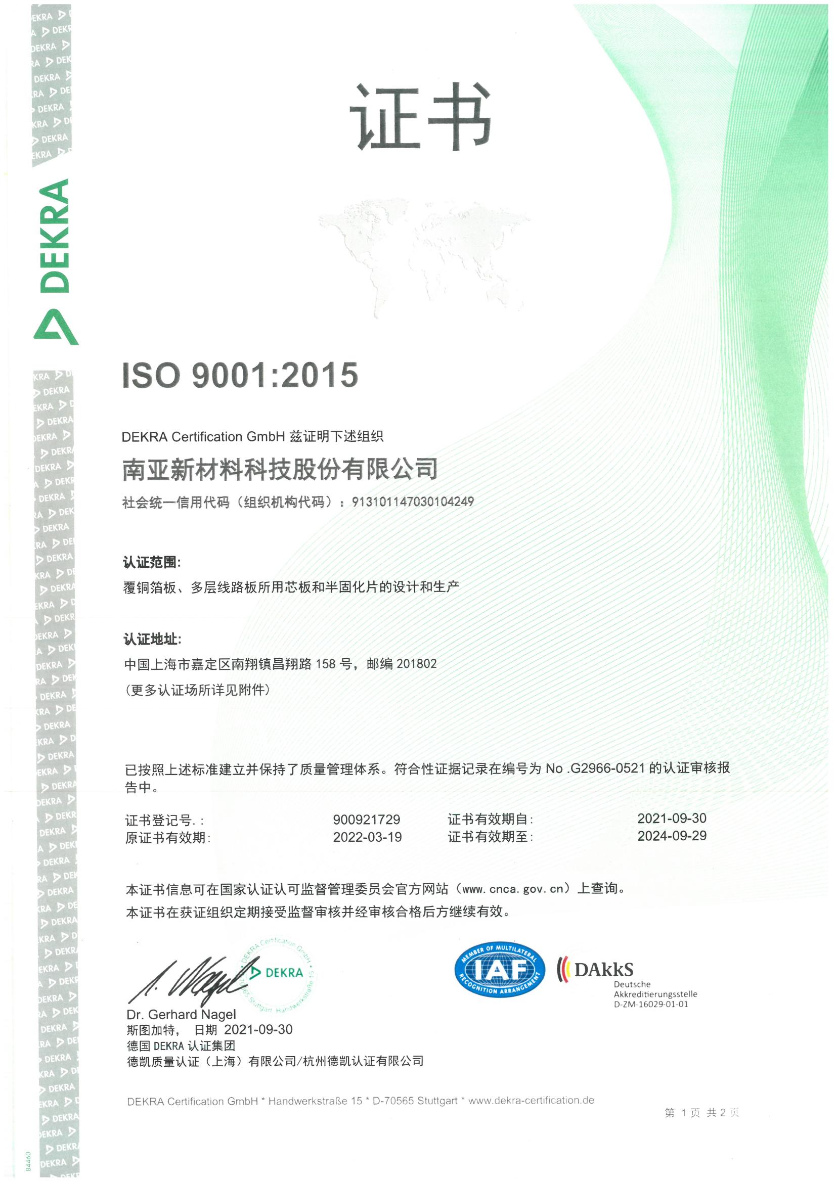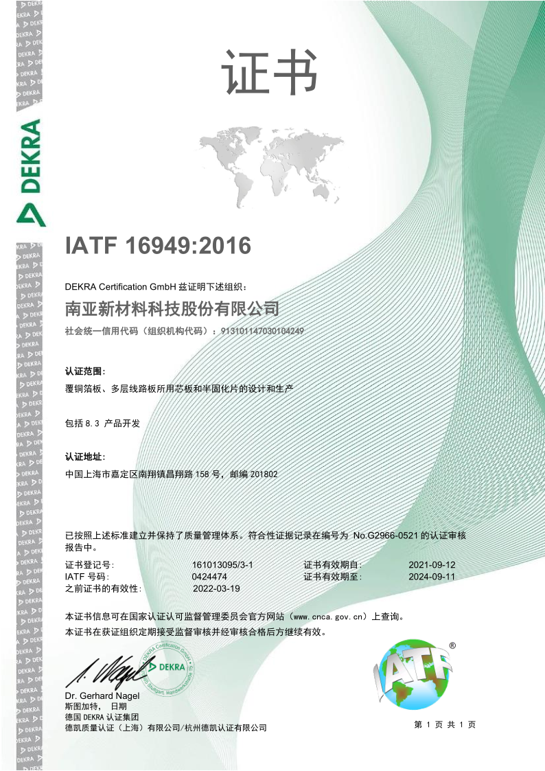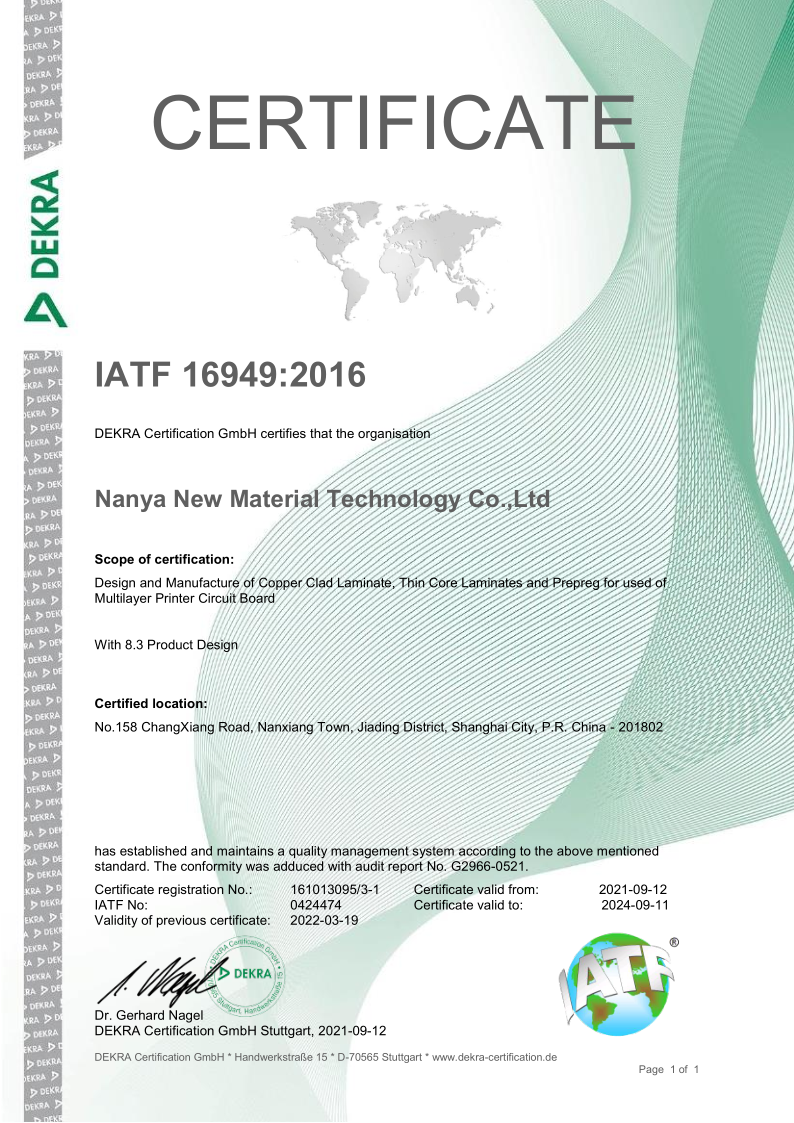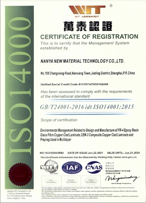 南亞新材始終堅(jiān)持質(zhì)量就是生命,持續(xù)不斷的改進(jìn)生產(chǎn)技術(shù)和服務(wù)水平,不斷完善質(zhì)量管理體系,務(wù)求滿足并超越不同客戶的要求和期望;經(jīng)過不懈的努力,公司先后通過了ISO9001質(zhì)量管理體系、 ISO14001環(huán)境管理體系和ISO45001職業(yè)健康安全管理體系的認(rèn)證及改版升級(jí)。